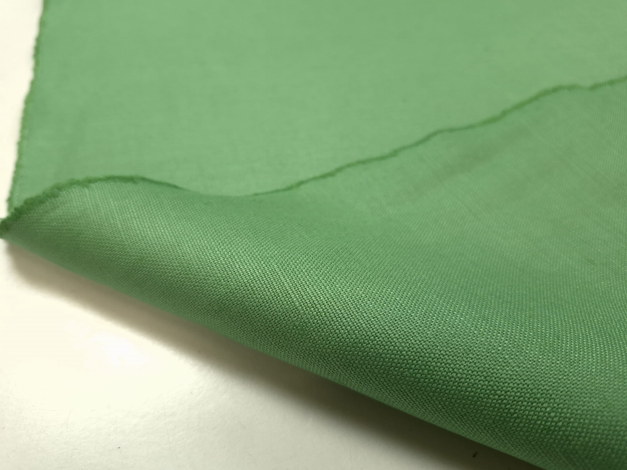 Len Easy Care w kolorze zielonym (bazylia. Dokładny skład to 52% len 48% bawełna. Wykończenie "Easy Care", dzięki czemu len mniej się gniecie, zapamiętuje swój kształt, mniej deformuje się przy praniu i łatwiej się go prasuje. Cienki, ale nie prześwitujący, lekko sztywny. Tej pozycji jest hurtowa ilość - ponad 500 mb, może być na większą produkcję. Len posiada certyfikat European Flax Certyficate. Przykładowe zastosowanie: