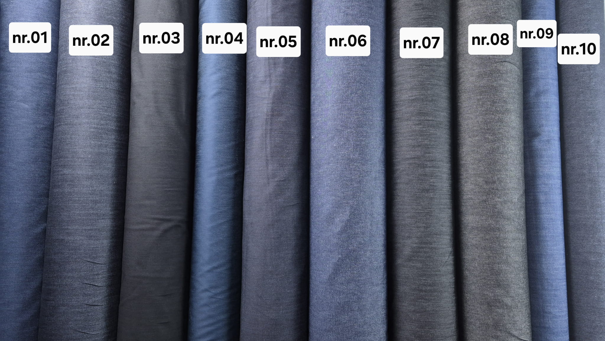 Tkanina jeans (dżins) o dokładnym składzie 84% bawełna 14% poliamid 2% elastan. Jest bardzo mocna i wytrzymała, splot diagonalny (skośny). W przypadku tego jeansu czuć dodatek elastanu, tkanina mocno uciąga się po szerokości, jest stosunkowo lejąca, średnio gruba. Piękny, głęboki kolor ciemny denim z delikatnym połyskiem pod światło. Ostatnie zdjęcie porównujące kolory naszych jeansów.