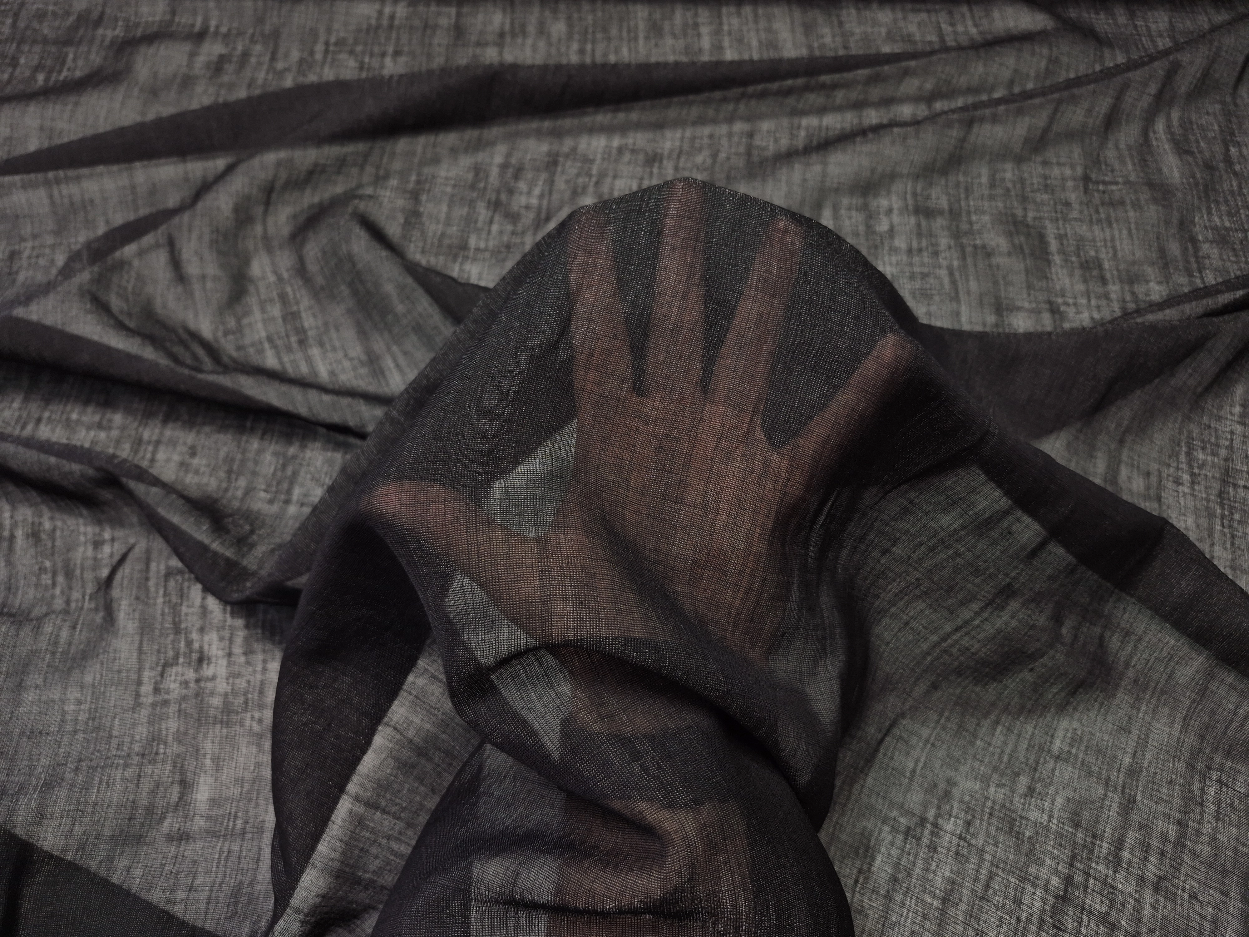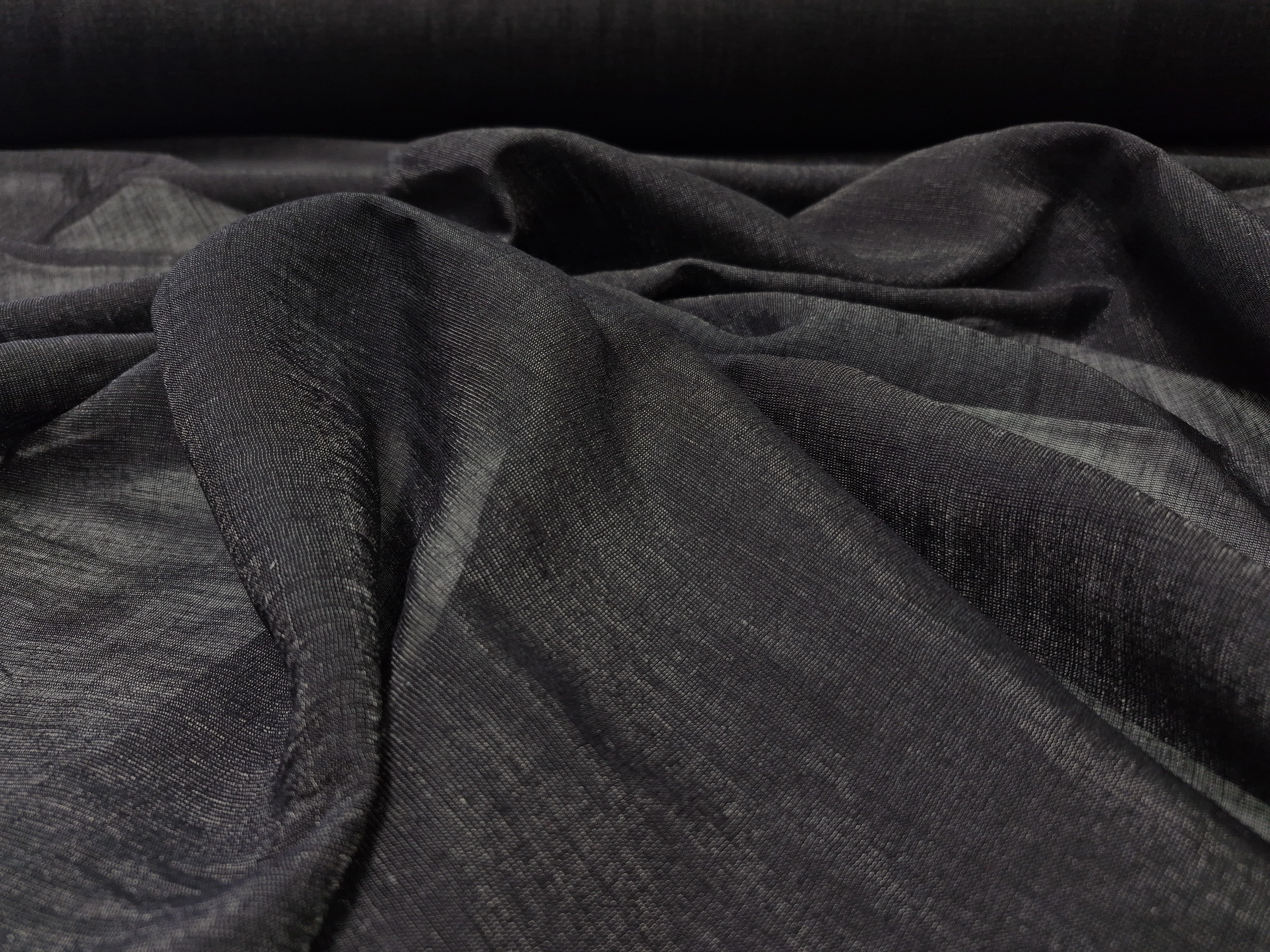 100% jedwab przetykany srebrną nicią, lekko mieniący się w świetle.