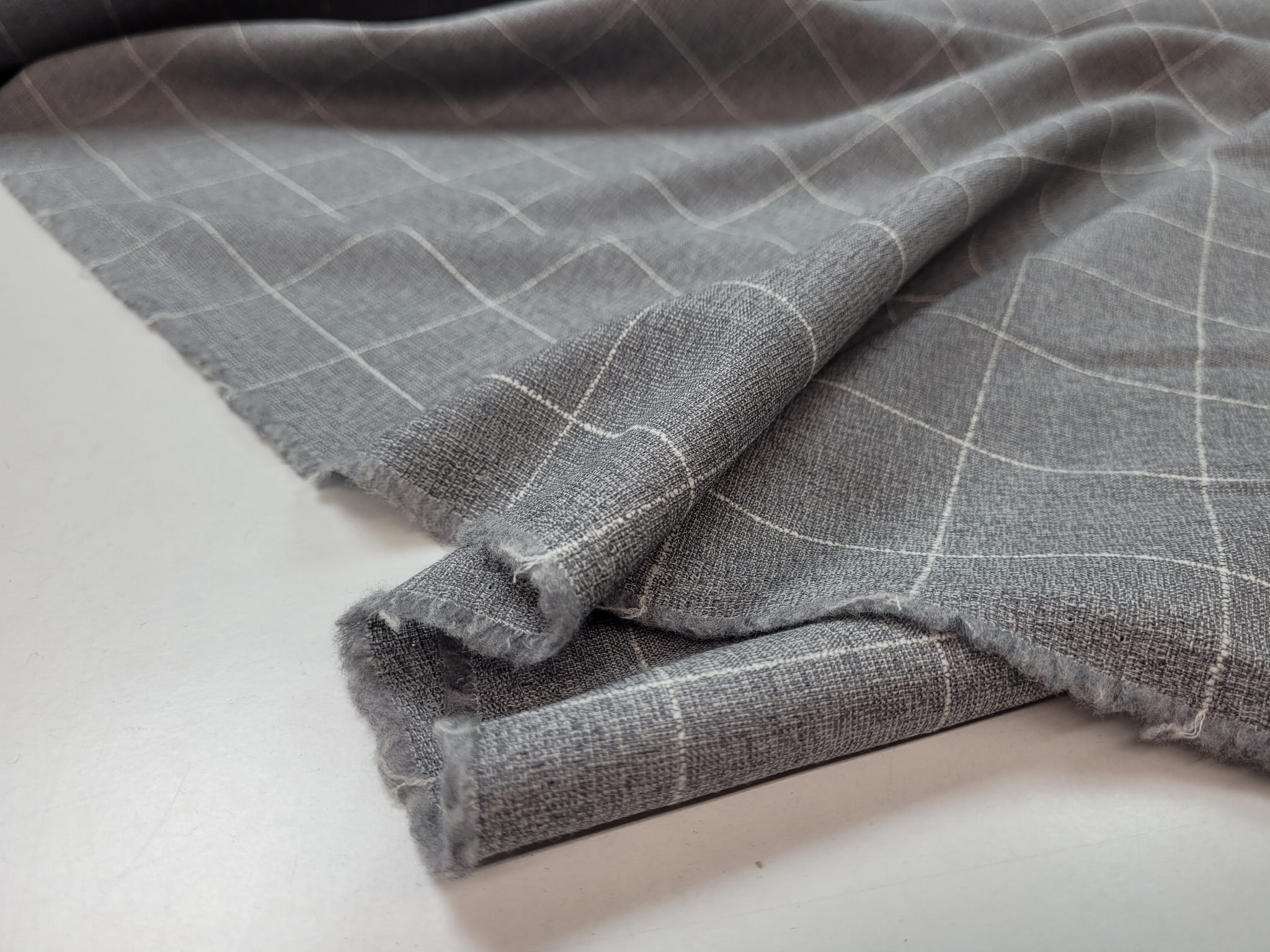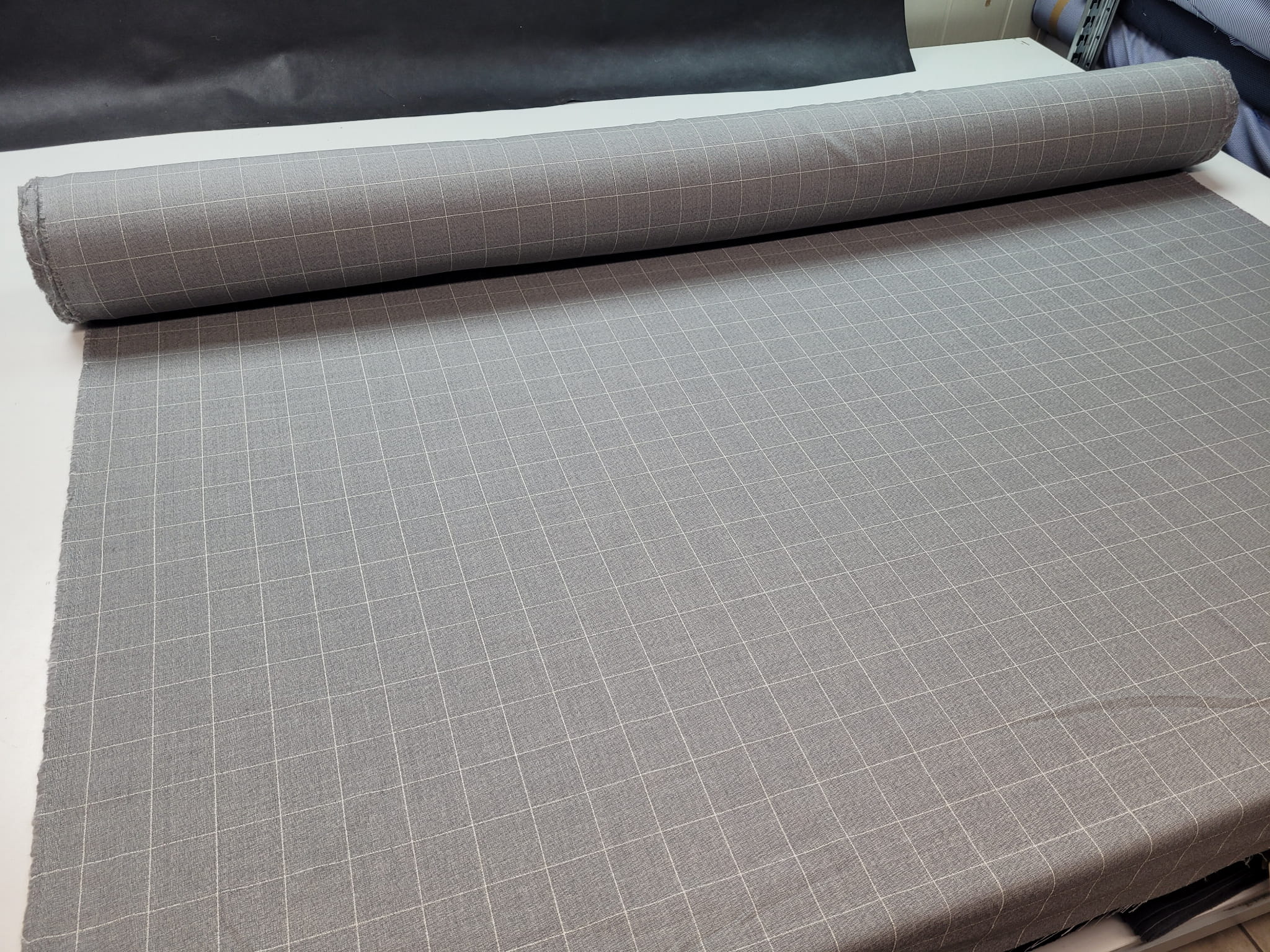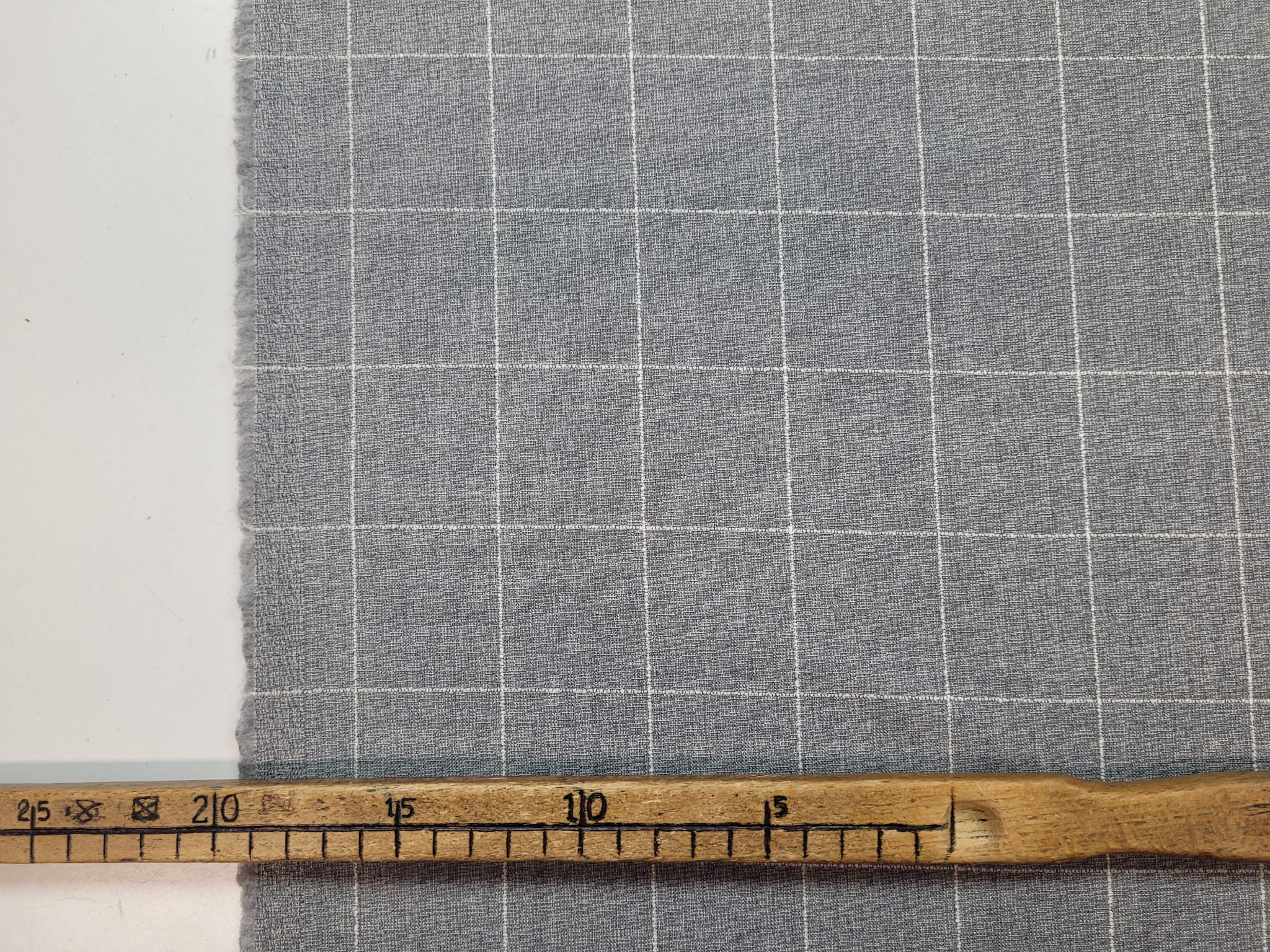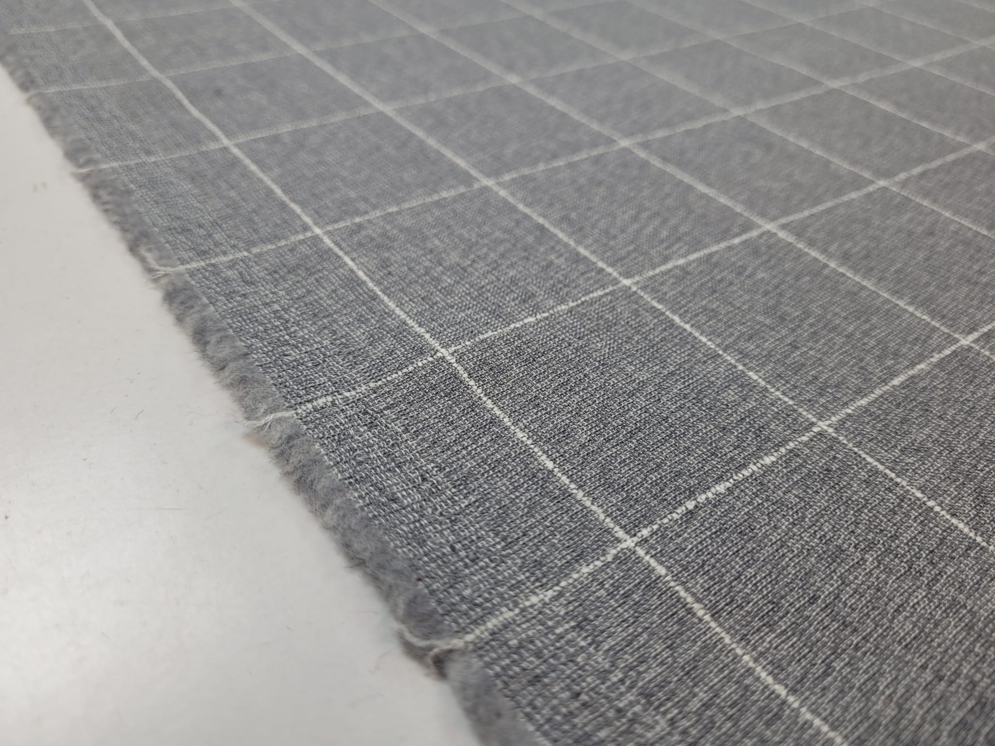 100% virgin wool włoskiej produkcji nazwany oryginalnie "Marlane". Jest to typowy materiał garniturowy w szaro-białą kratkę. Lekko szorstki, delikatnie pracujący po szerokości. W dotyku czuć lekko wystające białe linie kraty, typu 3D. Przykładowe zastosowanie: