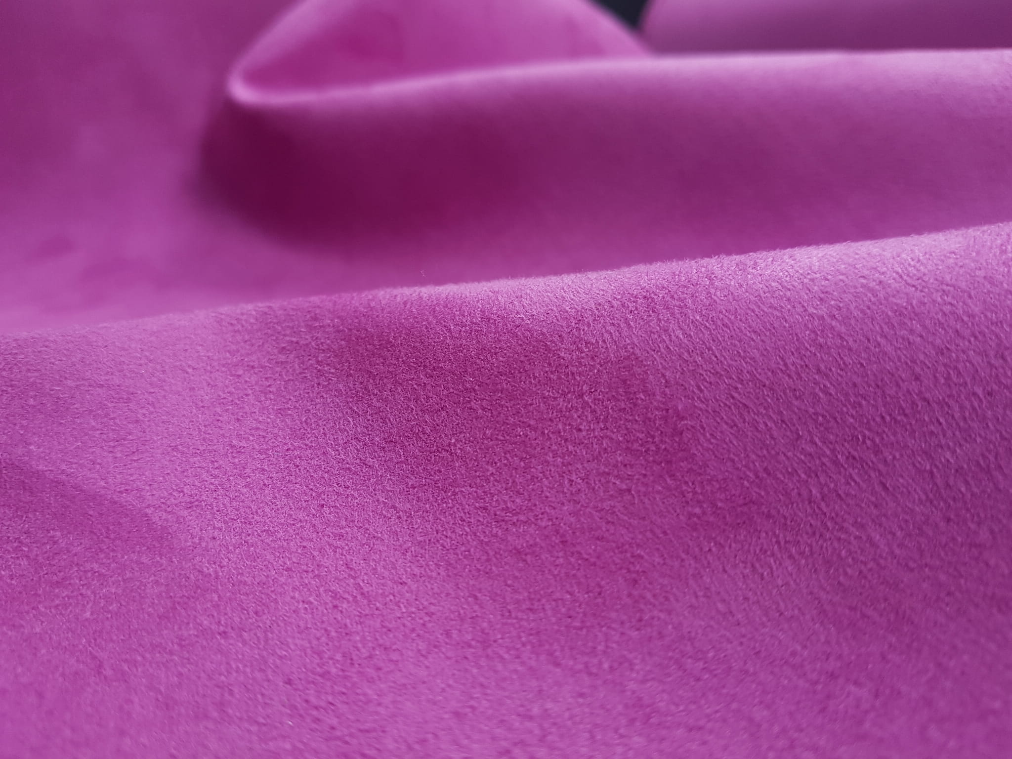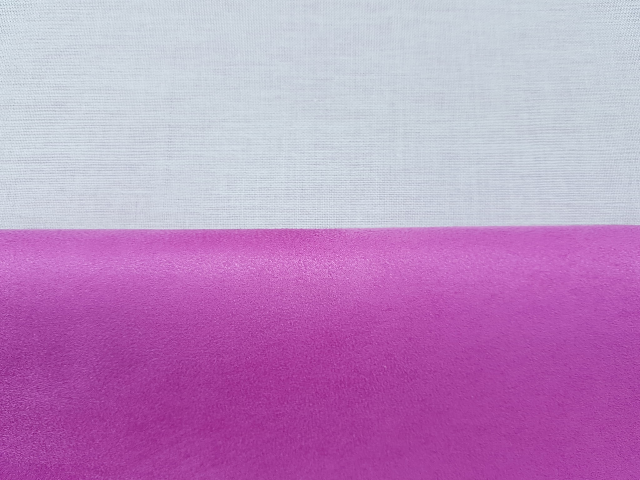 Wysokiej jakości tkanina obiciowa dekoracyjna z prawej strony różowy zamsz krótko strzyżony (nubuk), a z lewej podklejone policottonem.