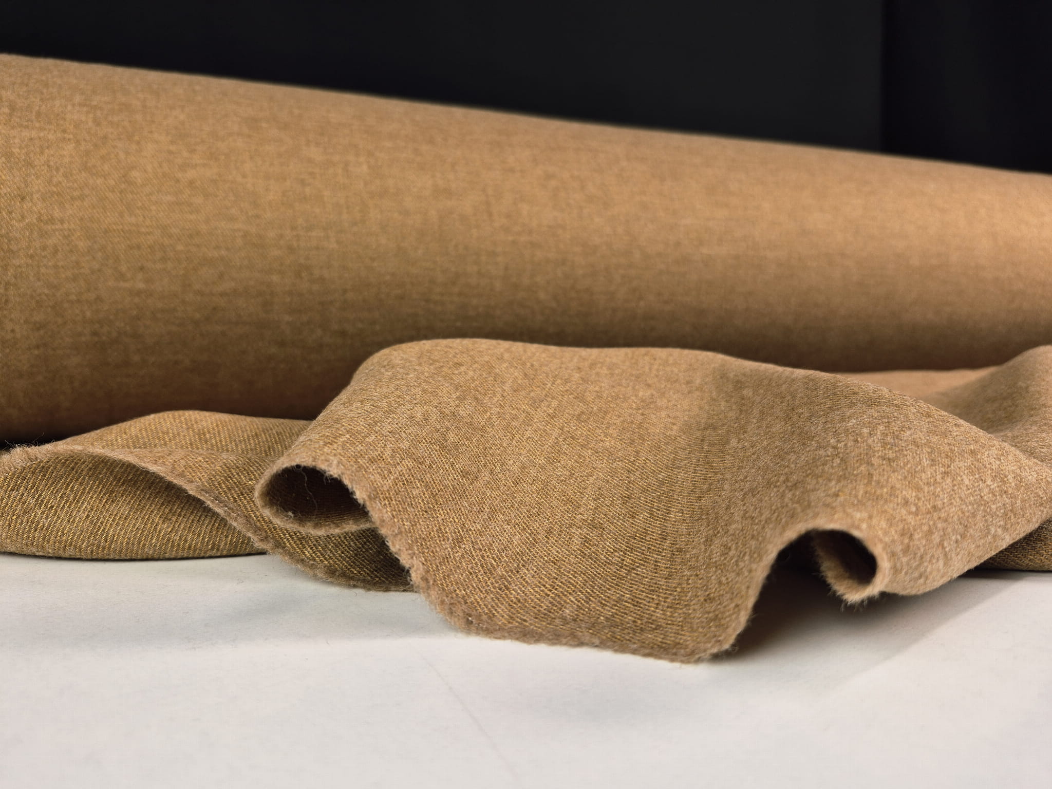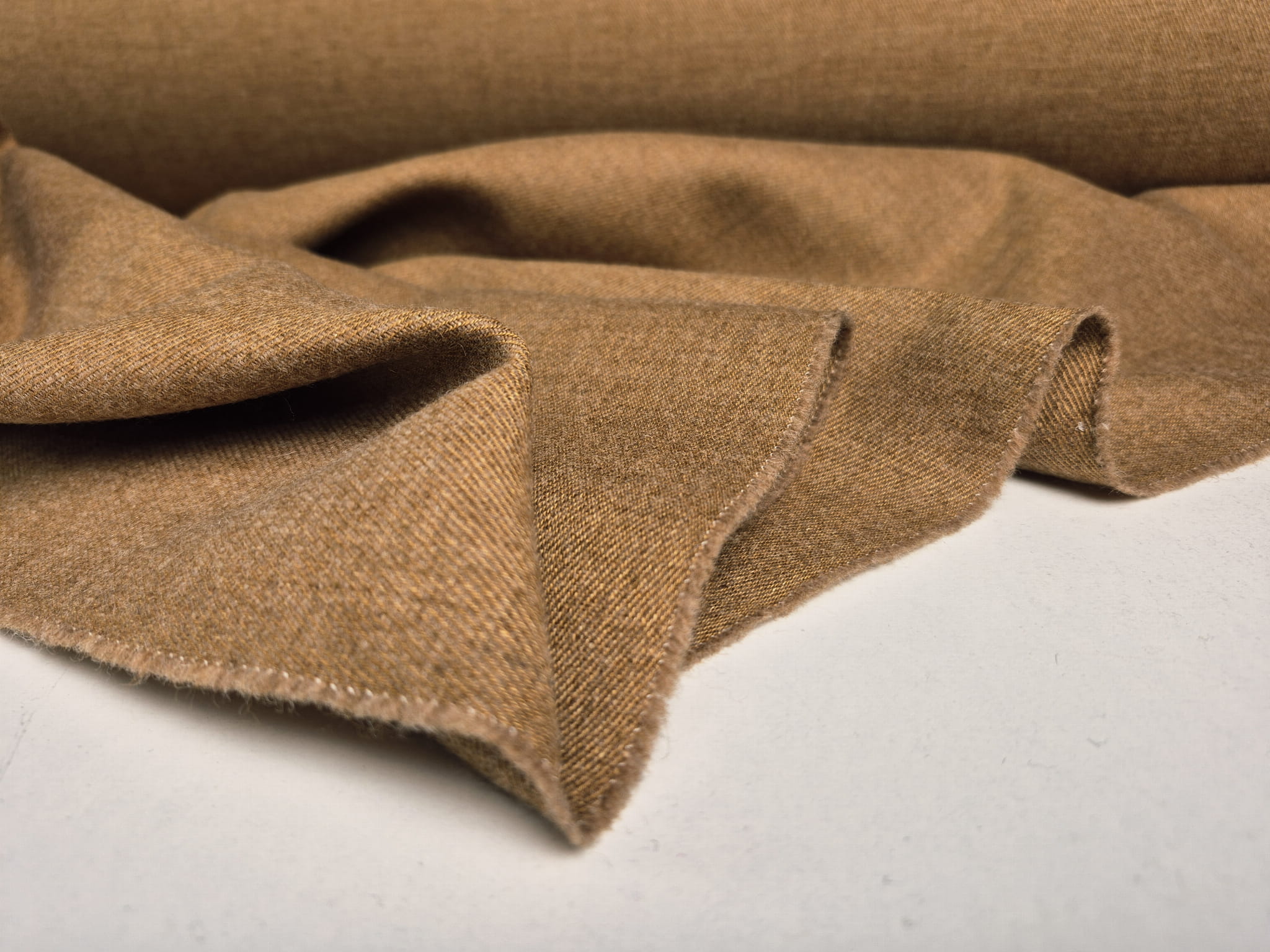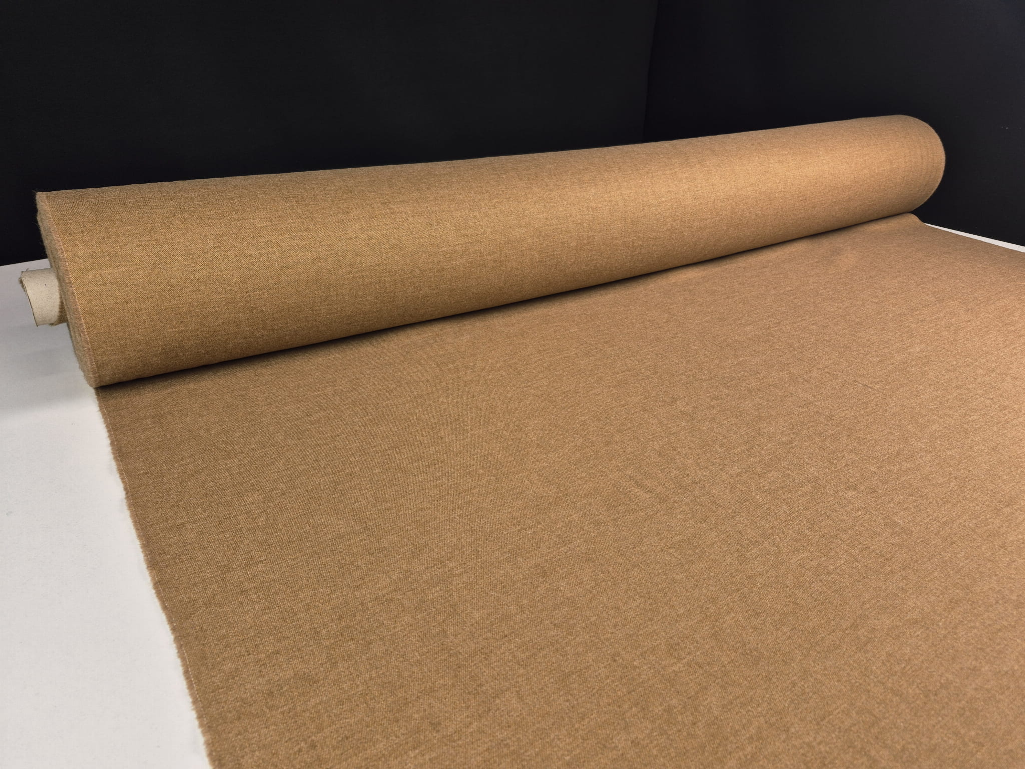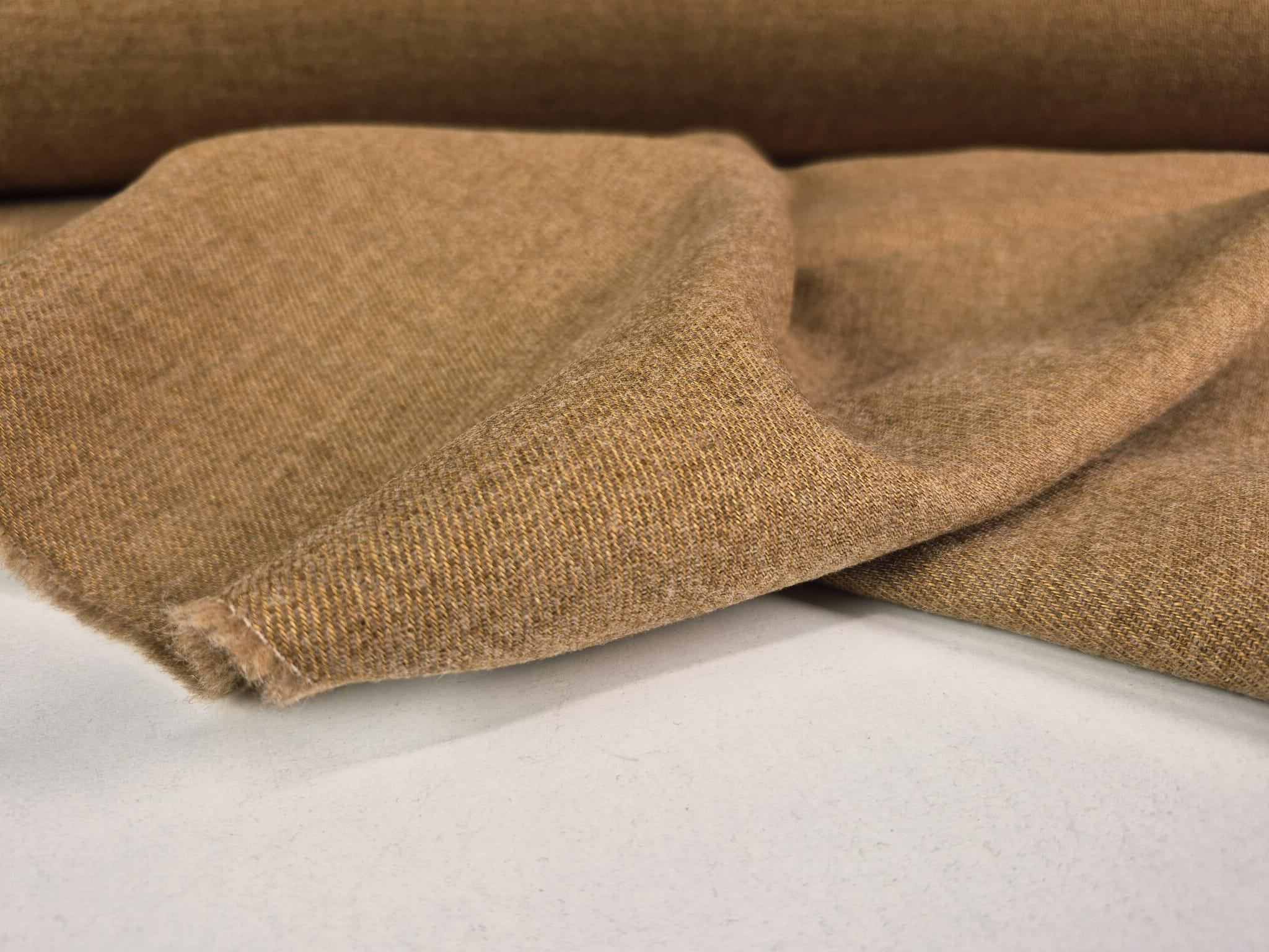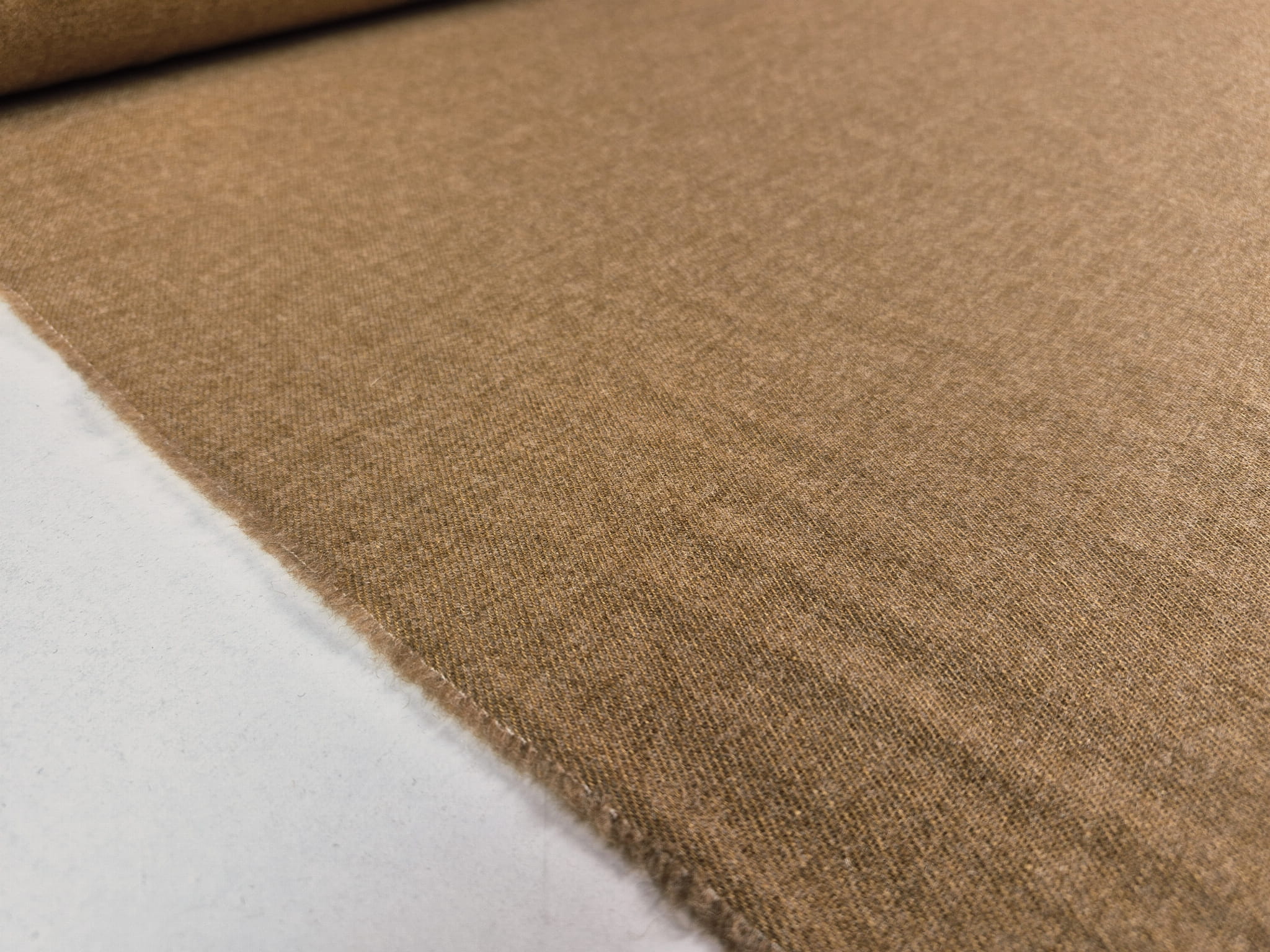 Tweed lniano-wełniany o dokładnym składzie 54% wełna 46% len. Rustykalna tkanina, lekko szorstka w dotyku, widoczny skośny splot. Ma stonowany, naturalny i nietypowy kolor brązu i beżu. Len z wełną posiada certyfikat European Flax Certyficate.