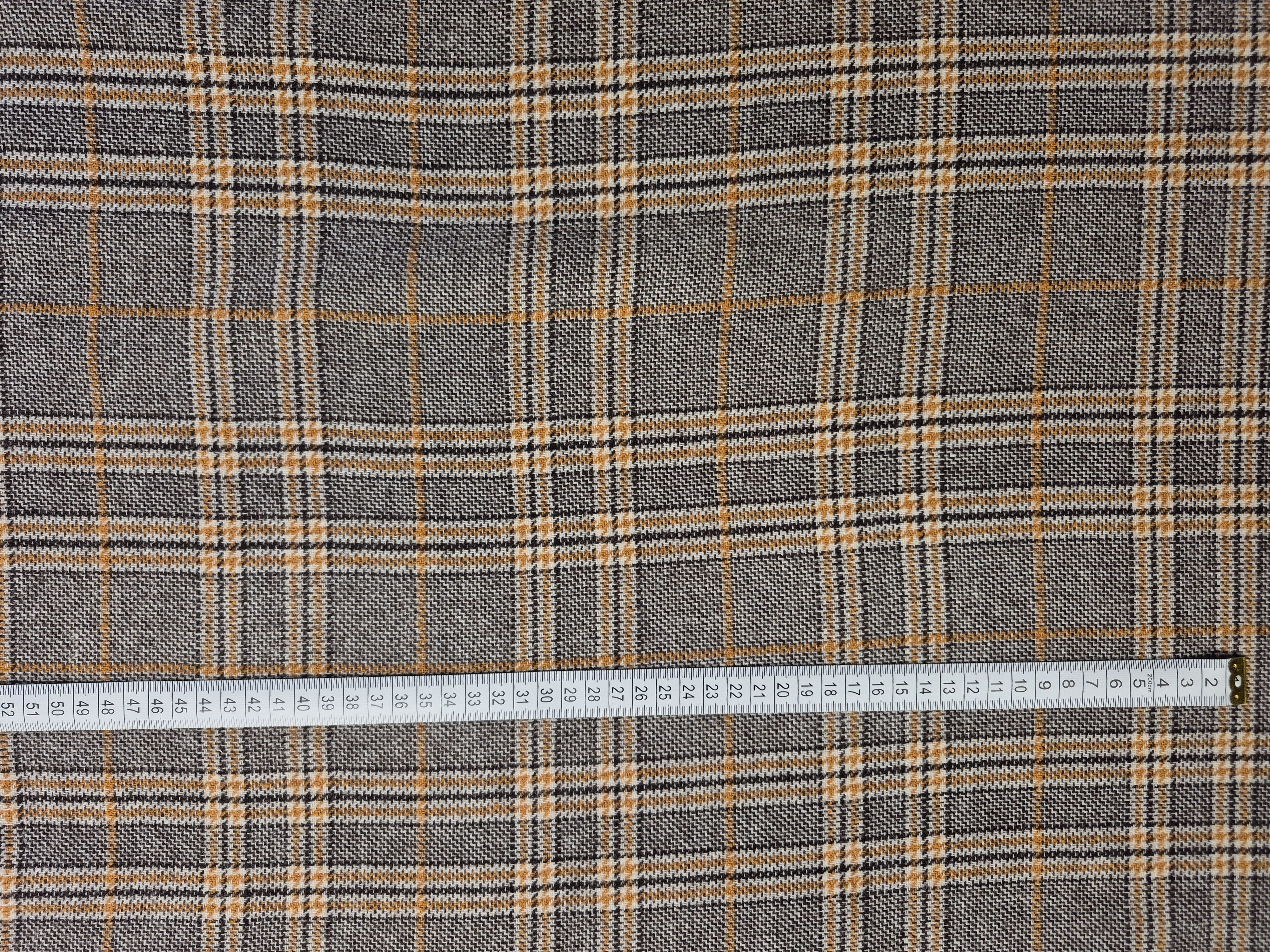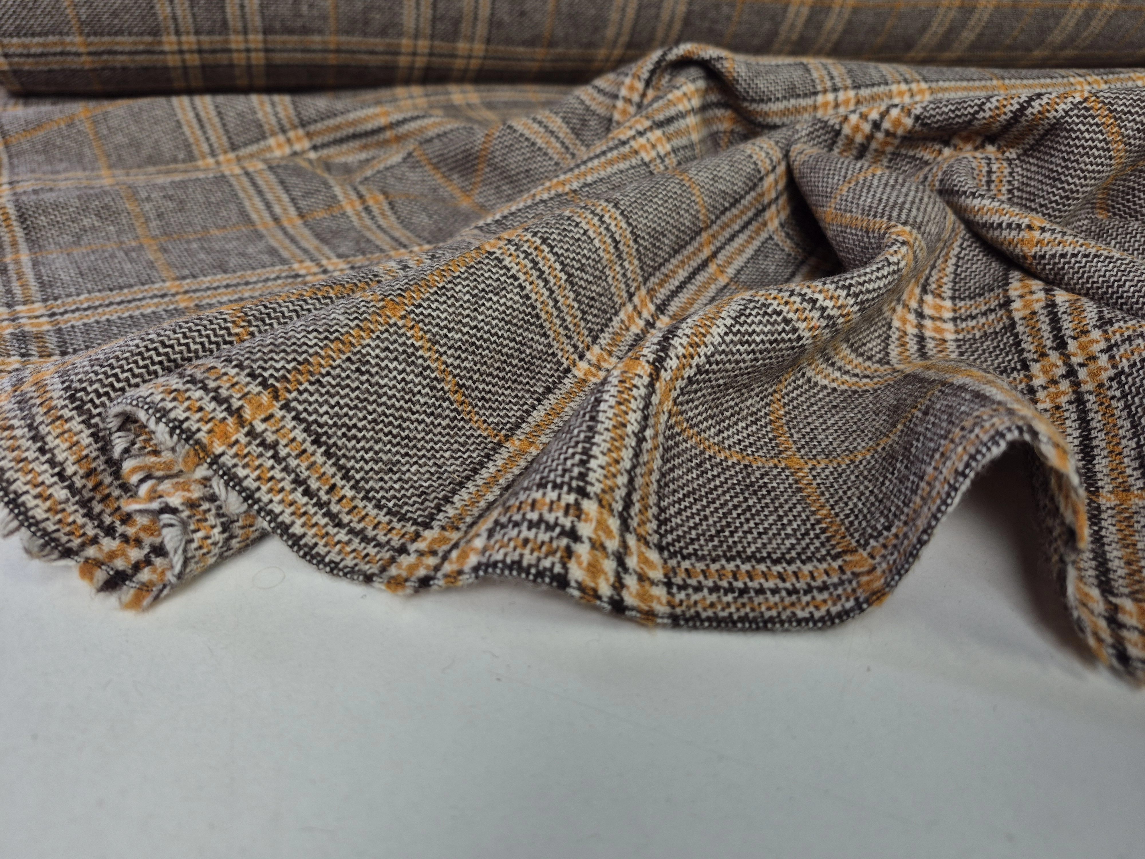 Wełna marynarkowa w kratę pomarańcz-brąz-biały 220g/m²
